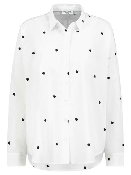 – czysta bawełna- kołnierz: kent- zapięcie: listwa guzikowa- zakończenie rękawów: guzik- dolny brzeg: zaokrąglony- detale: haft- krój: luźny- look: jednokolorowy