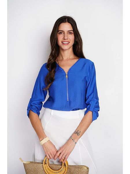 – z dodatkiem lnu- dekolt: V- detale: dekoracyjny zamek błyskawiczny- krój: prosty- look: jednokolorowyUwaga: Na metkach odzieży tej marki znajdują się rozmiary francuskie. Rozmiarówka została przez nas przeliczona. Podane do wyboru warianty rozmiarów odpowiadają standardowym europejskim rozmiarom konfekcji. Prosimy zapoznać się z zamieszczonym objaśnieniem rozmiarów.