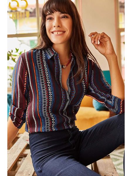 – kołnierz: kent- zapięcie: listwa guzikowa- zakończenie rękawów: patka i guzik- krój: prosty- wzór: paski