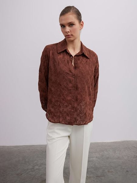 – z dodatkiem bawełny- kołnierz: kent- zapięcie: listwa guzikowa- zakończenie rękawów: guzik- krój: prosty- detale: haft- look: jednokolorowy- wykończenie: delikatnie prześwitująceUwaga: Przy wyborze właściwego wariantu zaleca się korzystanie z tabeli rozmiarów.