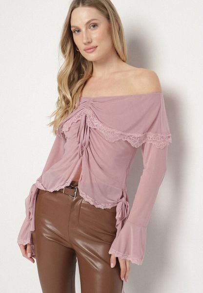 Różowa Siateczkowa Bluzka z Bawełny i Wiskozy z Odkrytymi Ramionami Fenikka