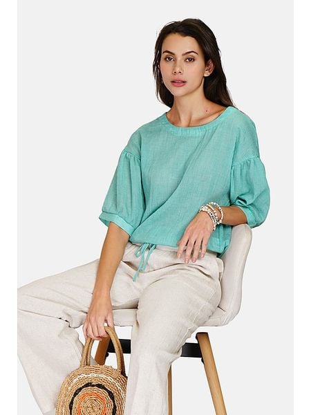 – czysty len- dekolt: okrągły- rękaw: bufiasty- długość rękawa: 3/4- dolny brzeg: ściągacz tunelowy- krój: luźny- look: jednokolorowyWskazówka: Na metkach odzieży tej marki znajdują się rozmiary francuskie. Rozmiarówka została przez nas przeliczona. Podane do wyboru warianty rozmiarów odpowiadają standardowym europejskim rozmiarom konfekcji. Prosimy zapoznać się z zamieszczonym objaśnieniem rozmiarów.