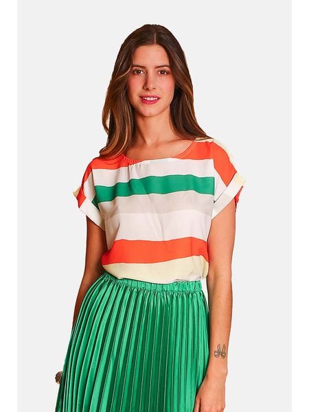 – z dodatkiem jedwabiu- dekolt: karo- krój: luźny- wzór: paskiUwaga: Na metkach odzieży tej marki znajdują się rozmiary francuskie. Rozmiarówka została przez nas przeliczona. Podane do wyboru warianty rozmiarów odpowiadają standardowym europejskim rozmiarom konfekcji. Prosimy zapoznać się z zamieszczonym objaśnieniem rozmiarów.