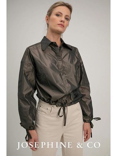 – z dodatkiem poliestru pochodzącego z recyklingu- kołnierz: kent- zapięcie: listwa guzikowa- zakończenie rękawów: elastyczne- dolny brzeg: ściągacz tunelowy- krój: luźny- look: jednokolorowy