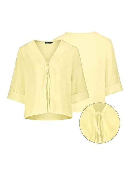 – dekolt: V- zapięcie: wiązane tasiemki- zakończenie rękawa: podwijane- krój: prosty- look: jednokolorowy