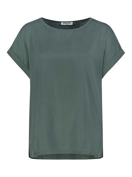 – dekolt: okrągły- zakończenie rękawa: podwijane- dolny brzeg: z rozcięciem- krój: prosty- look: jednokolorowy