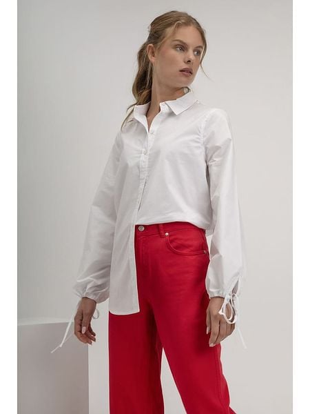 – czysta bawełna- kołnierz: kent- zapięcie: listwa guzikowa- rękaw: bufiasty- zakończenia rękawów: wiązanie- krój: luźny- look: jednokolorowy