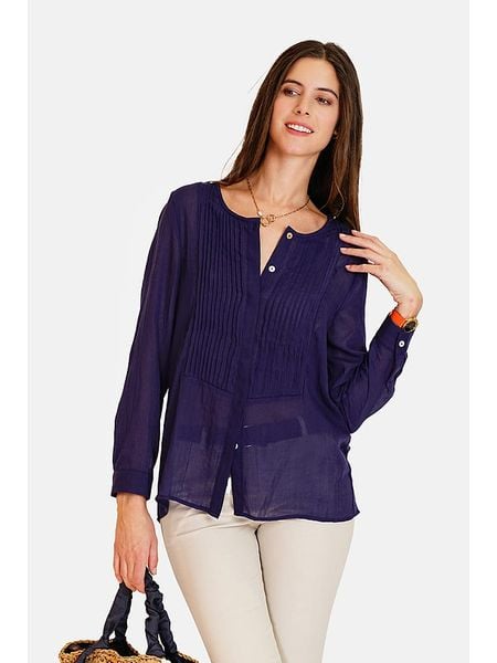 – czysty len- dekolt: okrągły- zapięcie: listwa guzikowa- zakończenie rękawów: guzik- detale: plisy- krój: prosty- look: jednokolorowy- wykończenie: delikatnie prześwitująceWskazówka: Na metkach odzieży tej marki znajdują się rozmiary francuskie. Rozmiarówka została przez nas przeliczona. Podane do wyboru warianty rozmiarów odpowiadają standardowym europejskim rozmiarom konfekcji. Prosimy zapoznać się z zamieszczonym objaśnieniem rozmiarów.