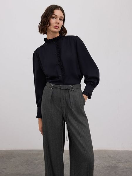 – kołnierz: stójka- zapięcie: listwa guzikowa- krój rękawów: bufiasty- zakończenie rękawów: guziki- dolny brzeg: zaokrąglony- detale: ozdobna zakładka, falbanka- krój: luźny- look: jednokolorowyUwaga: Przy wyborze właściwego wariantu zaleca się korzystanie z tabeli rozmiarów.