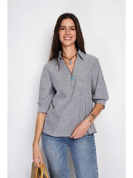– z dodatkiem lnu- kołnierz: kent- dekolt: V- rękaw: bufiasty- długość rękawa: półdługi- krój: luźny- wzór: paskiUwaga: Na metkach odzieży tej marki znajdują się rozmiary francuskie. Rozmiarówka została przez nas przeliczona. Podane do wyboru warianty rozmiarów odpowiadają standardowym europejskim rozmiarom konfekcji. Prosimy zapoznać się z zamieszczonym objaśnieniem rozmiarów.