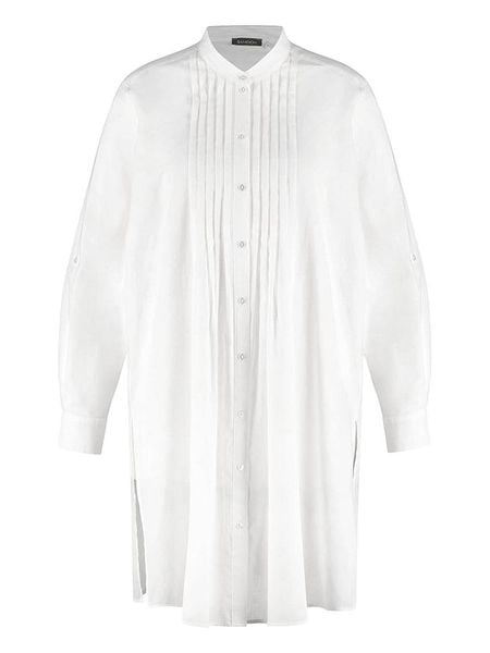 – czysta bawełna organiczna- dekolt: okrągły- zapięcie: listwa guzikowa- krój rękawów: bufiasty- zakończenie rękawów: guzik- dolny brzeg: z rozcięciem- krój: oversized- detale: plisy- look: jednokolorowy