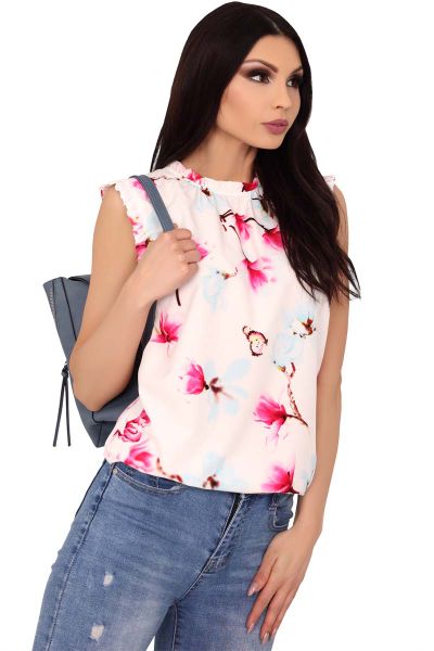 Biała Letnia Bluzka z Kwiatowym Motywem z Falbankami