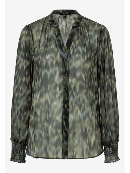 – z dodatkiem poliestru pochodzącego z recyklingu- kołnierz: stójka- zapięcie: listwa guzikowa- krój: luźny- wzór: na całości