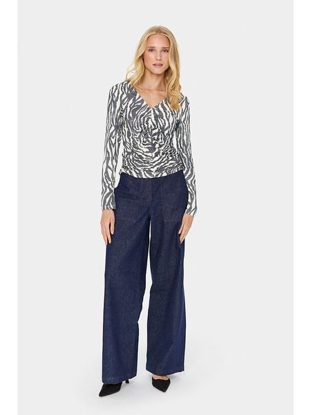 – dekolt: V- detale: ozdobna zakładka- krój: wąski- wzór: na całości