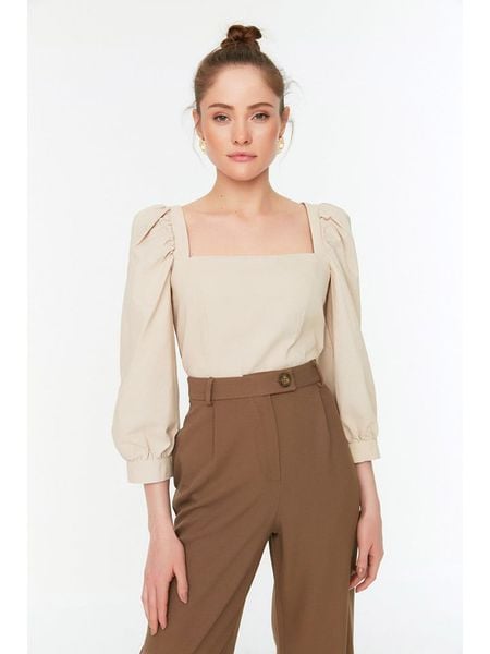 – z dodatkiem bawełny- dekolt: karo- rękaw: bufiasty- długość rękawa: 3/4- krój: cropped- look: jednokolorowy
