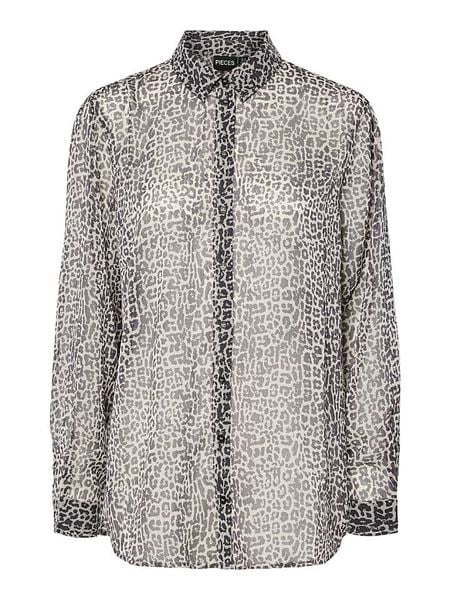 – z poliestru pochodzącego z recyklingu- kołnierz: kent- zapięcie: listwa guzikowa- zakończenie rękawów: guzik- krój: luźny- wzór: panterka- wykończenie: delikatnie prześwitujące