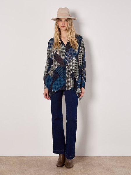 – z poliestru pochodzącego z recyklingu- dekolt: V- zakończenie rękawów: guzik- krój: oversized- wzór: na całości