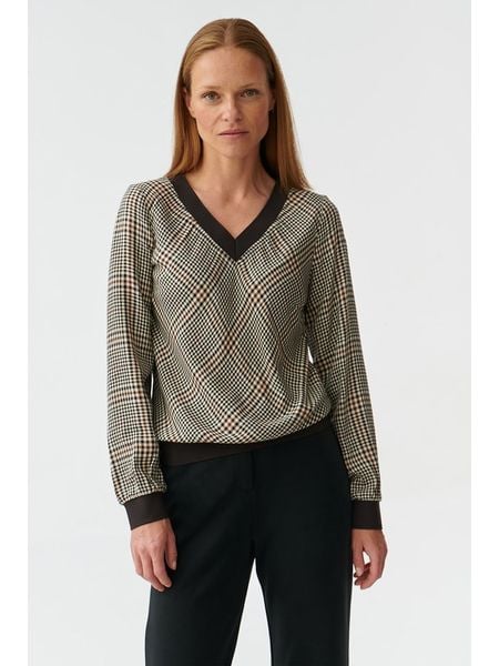 – czysta wiskoza- dekolt: V- krój: prosty- wzór: kratka