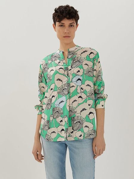 – czysta wiskoza- dekolt: z rozcięciem- zakończenie rękawów: guzik- dolny brzeg: z rozcięciem- krój: prosty- wzór: na całości