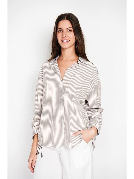 – z dodatkiem lnu- kołnierz: kent- zapięcie: listwa guzikowa- zakończenie rękawów: mankiet na guzik- krój: luźny- wzór: paskiWskazówka: Na metkach odzieży tej marki znajdują się rozmiary francuskie. Rozmiarówka została przez nas przeliczona. Podane do wyboru warianty rozmiarów odpowiadają standardowym europejskim rozmiarom konfekcji. Prosimy zapoznać się z zamieszczonym objaśnieniem rozmiarów: