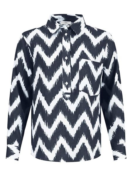 – czysty len- kołnierz: kent- zapięcie: skrócona listwa guzikowa- kieszenie: na piersi- zakończenie rękawów: mankiet na guzik- krój: prosty- wzór: na całości