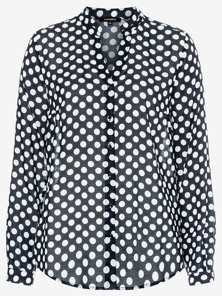 – czysta wiskoza- dekolt: z rozcięciem- zapięcie: listwa guzikowa- zakończenie rękawów: mankiet na guzik – dolny brzeg: zaokrąglony- krój: prosty- wzór: kropki