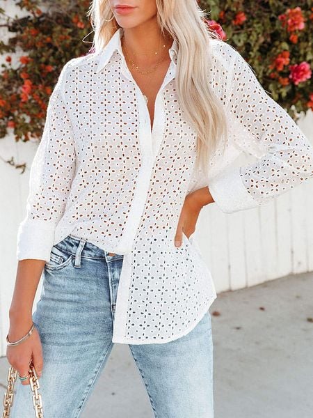 – z dodatkiem bawełny- kołnierz: kent- zapięcie: listwa guzikowa- zakończenie rękawów: mankiet na guzik- krój: prosty- dolny brzeg: zaokrąglony- wzór: dziurkowanyUwaga: Przy wyborze właściwego wariantu zaleca się korzystanie z tabeli rozmiarów.