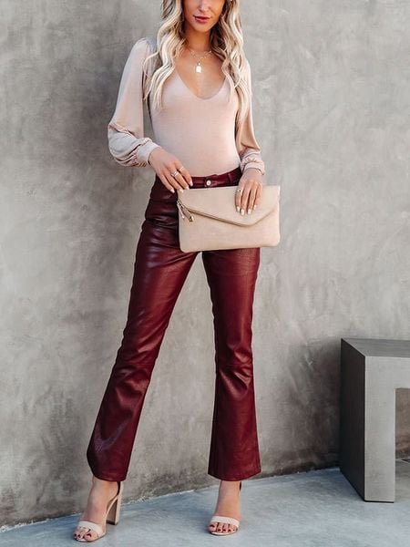 – dekolt: V- rękaw: bufiasty- krój: wąski- look: jednokolorowy
