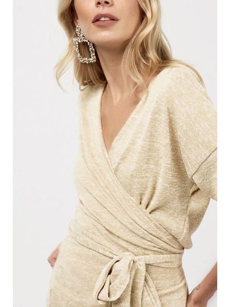 – dekolt: V- krój rękawów: bufiasty- detale: ozdobne wiązanie- krój: wąski- wzór: melanżowy