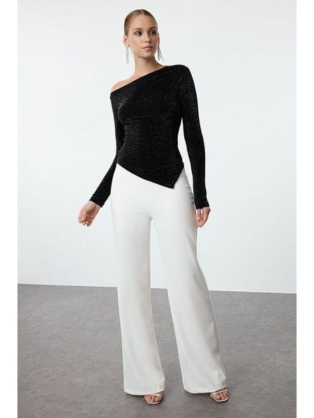 – krój rękawów: na jedno ramię- detale: połyskująca nitka- krój: wąski- look: jednokolorowy