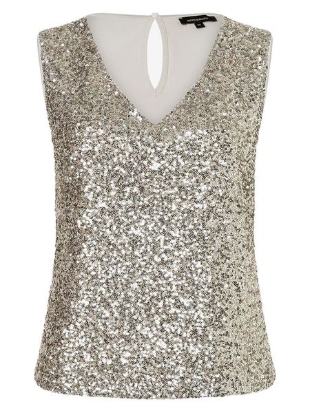 – dekolt: V- zapięcie: guzik na plecach- detale: cekiny- krój: prosty- look: jednokolorowy