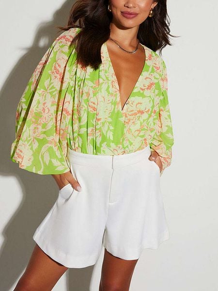 – dekolt: V- rękaw: bufiasty- zakończenie rękawów: elastyczne- krój: luźny- wzór: kwiatowyUwaga: Przy wyborze właściwego wariantu zaleca się korzystanie z tabeli rozmiarów.