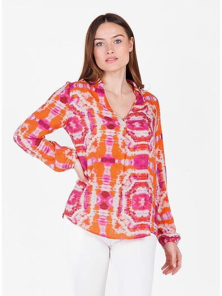 – czysta wiskoza- dekolt: V- ściągacz: zakończenia rękawów- krój: prosty- wzór: na całości