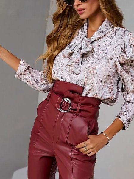 – dekolt: V- zakończenie rękawów: mankiet na guzik- detale: ozdobne wiązanie- krój: prosty- wzór: na całości