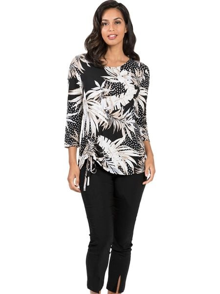 – dekolt: okrągły- krój: prosty- detale: ozdobne wiązanie- wzór: kwiatowy