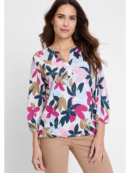 – dekolt: z rozcięciem- długość rękawa: 3/4- zakończenie rękawów: elastyczne- krój: prosty- wzór: na całości