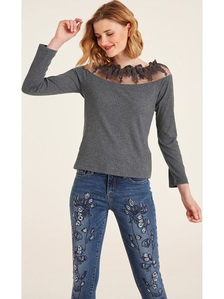 – dekolt: okrągły- detale: koronka- look: jednokolorowy, prążkowany- krój: wąski