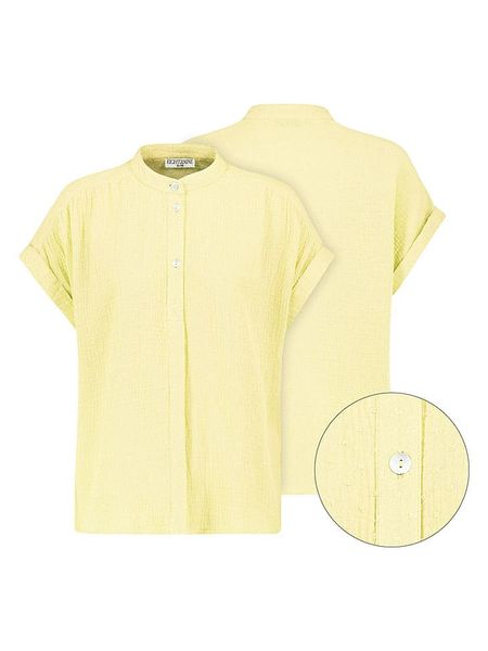 – czysta bawełna- dekolt: okrągły- zapięcie: skrócona listwa guzikowa- zakończenie rękawa: podwijane- detale: nakładane rękawki- krój: prosty- look: jednokolorowy
