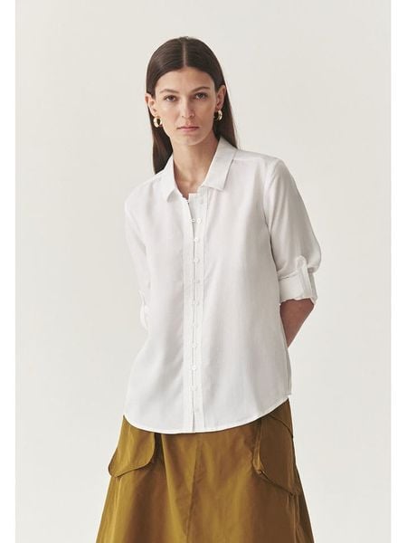 – czysty lyocell- kołnierz: kent- zapięcie: listwa guzikowa- zakończenie rękawów: patka i guzik- dolny brzeg: zaokrąglony- krój: prosty- look: jednokolorowy