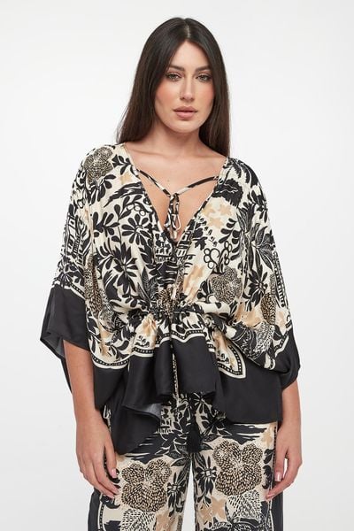 Wiskozowa bluzka Amira Mosaic z geometrycznym wzorem i wiązaniem na plecach PLUS SIZE XXL OVERSIZE JESIEŃ