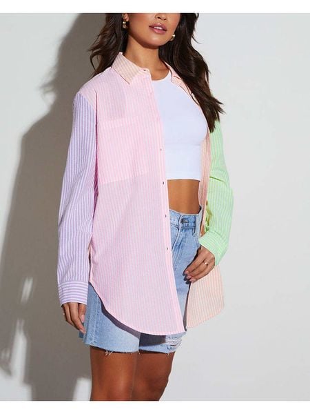 – kołnierz: kent- zakończenie rękawów: guziki- krój: prosty- wzór: paski
