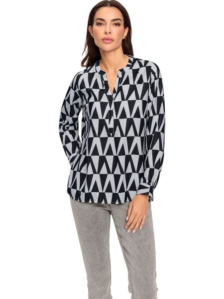 – dekolt: z rozcięciem- zapięcie: skrócona listwa guzikowa- krój: prosty- wzór: na całości