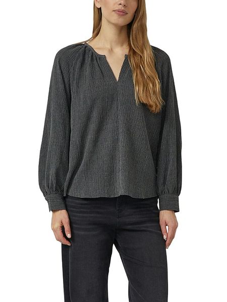 – dekolt: z rozcięciem- krój rękawów: bufiasty- zakończenie rękawów: mankiet na guzik- dolny brzeg: zaokrąglony- krój: dłuższe plecy- look: jednokolorowy