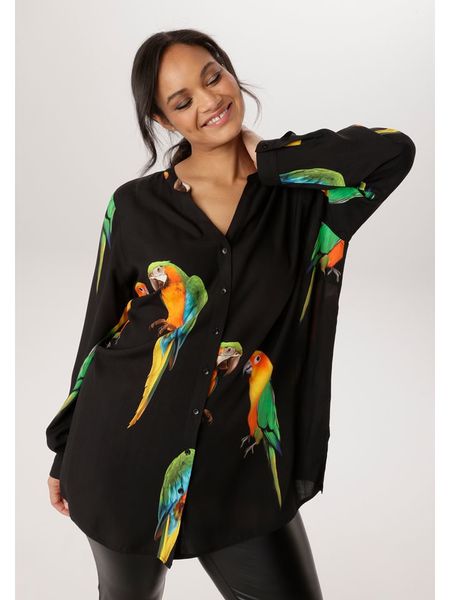 – czysta wiskoza- dekolt: z rozcięciem- zapięcie: listwa guzikowa- zakończenie rękawów: guzik- krój: oversized- wzór: graficzny