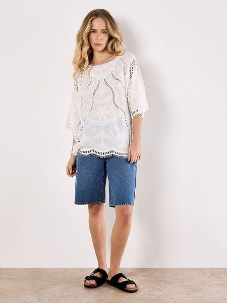 – czysta bawełna- dekolt: okrągły- krój rękawów: nietoperz- długość rękawa: 3/4- detale: szydełkowana koronka- krój: prosty- look: jednokolorowy
