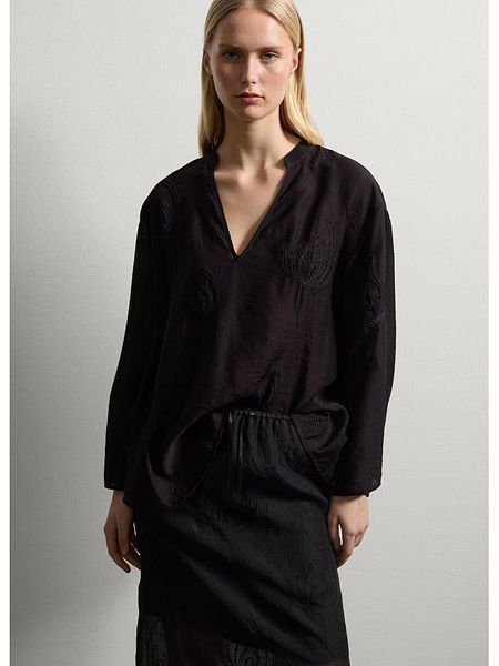 – dekolt: V- krój rękawów: rozszerzany do dołu – krój: luźny – wzór: kwiatowy