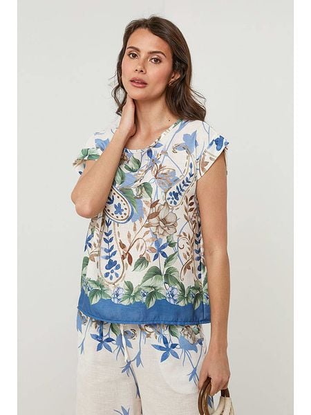 Lin Passion Bluzka w kolorze kremowym ze wzorem rozmiar: 34/36