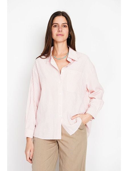 – z dodatkiem lnu- kołnierz: kent- zapięcie: listwa guzikowa- zakończenie rękawów: mankiet na guzik- krój: luźny- wzór: paskiWskazówka: Na metkach odzieży tej marki znajdują się rozmiary francuskie. Rozmiarówka została przez nas przeliczona. Podane do wyboru warianty rozmiarów odpowiadają standardowym europejskim rozmiarom konfekcji. Prosimy zapoznać się z zamieszczonym objaśnieniem rozmiarów: