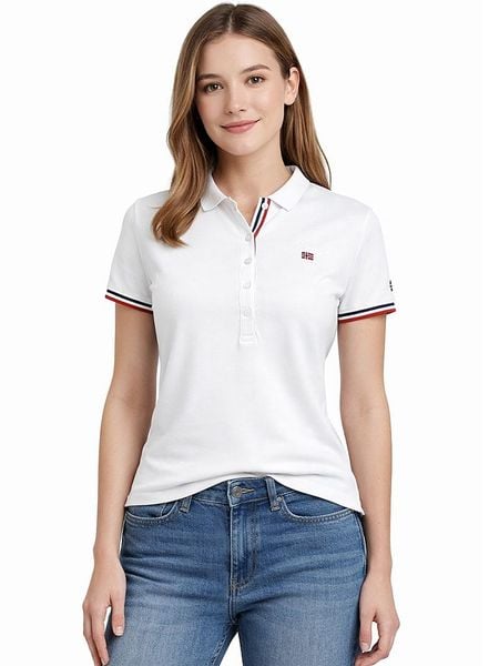 – czysta bawełna- kołnierzyk: polo- zapięcie: skrócona listwa guzikowa- detale: kontrastujące paski, haft z logo- krój: taliowany- look: jednokolorowy