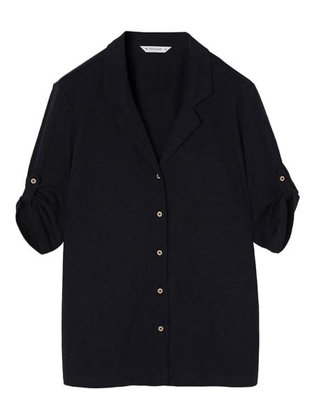 – kołnierzyk: z klapami- dekolt: V- zapięcie: listwa guzikowa- zakończenie rękawów: guzik- długość rękawa: półdługi- krój: prosty- look: jednokolorowy